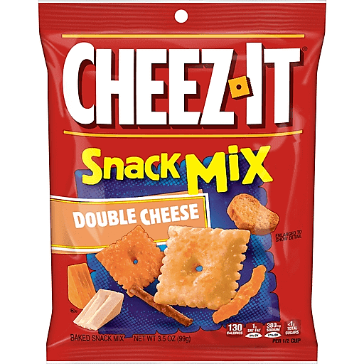 Satisfy your snack time cravings with a delicious handful of Cheez-It Double Cheese snack mix . Featuring a tasty combination of crackers made with real cheese, salty pretzels, mini toasted bread slices, and scrumptious cheese curls that have been baked to crispy, crunchy perfection. Great for sharing and made for easy, sensible snacking, Cheez-It Double Cheese snack mix is the ideal companion for lunchboxes, after-school snacks and busy, on-the-go moments. Each handful provides a satisfying, cheesy crunch with every bite.